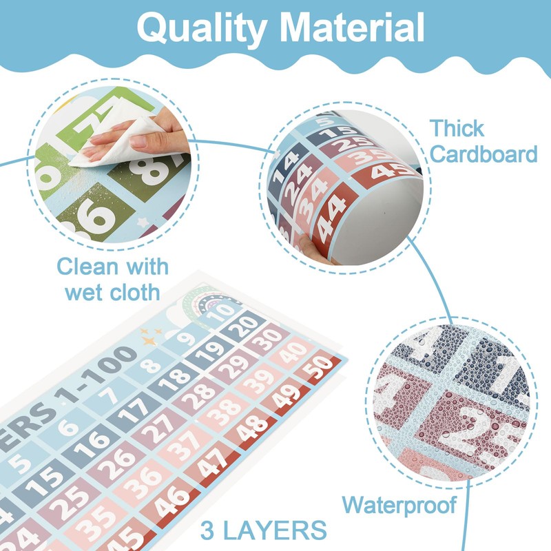 【Large size numbers bulletin board】The continuous number line decor from 1 to 100, comes with 2 pieces decoration, each border strip measures about 39” x 13” (99cm x 32cm),Putting up the decor on the wall or blackboard will make the numbers learning and counting become easy, students’ interest and attention will be aroused greatly.The boho rainbow posters providing a fun visual reference and study method for math learners.