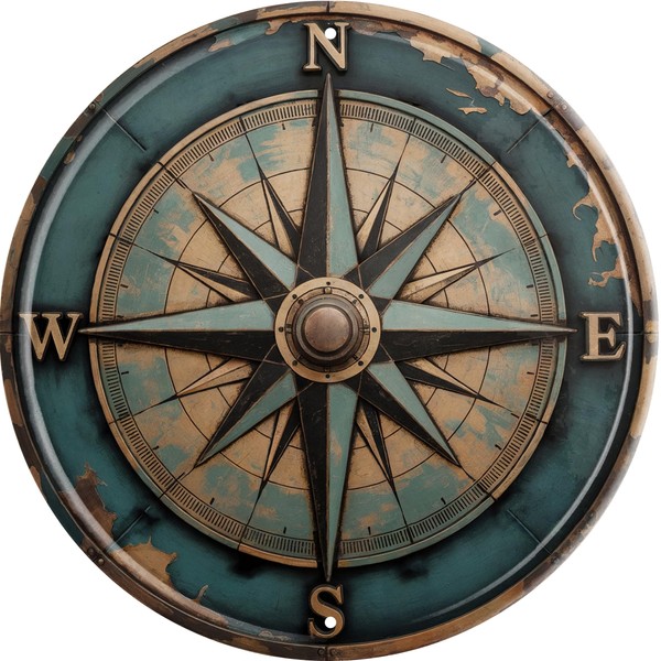 Boho Nautical Compass Funny Rustic Wall Metal Tin Signs Decor 8x8 in