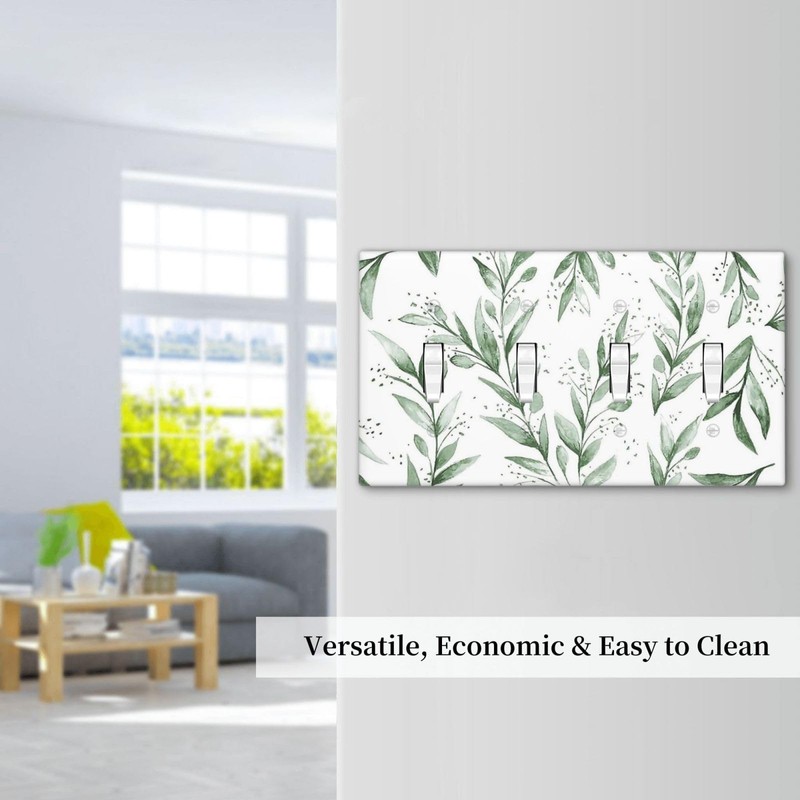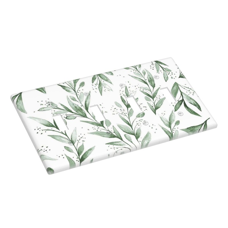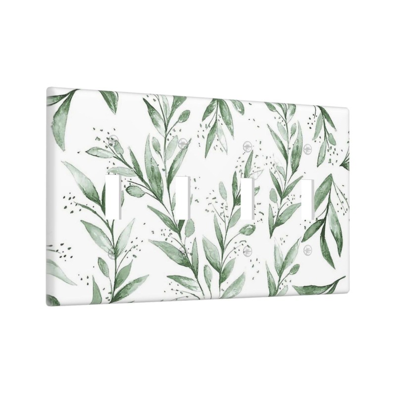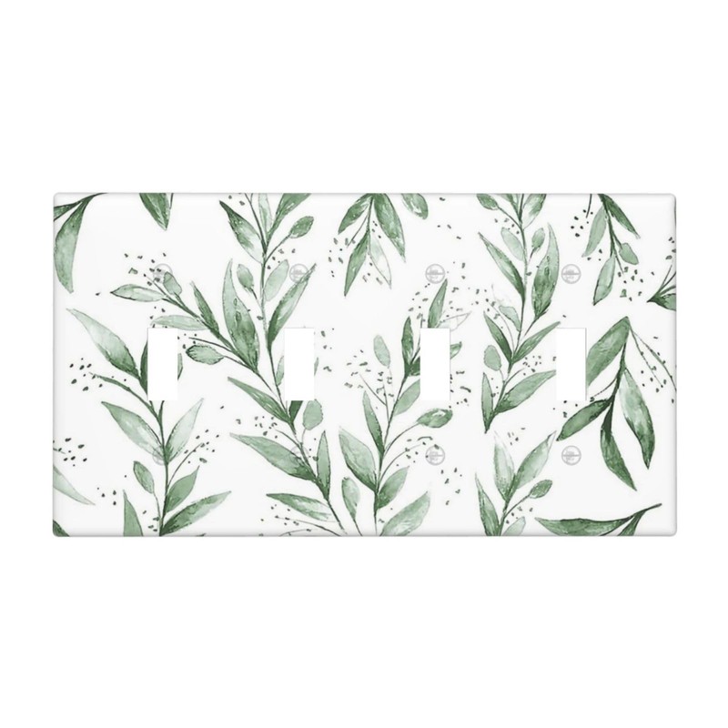 Boho Olive Green Eucalyptus Leaf 4 Gang Device Light Switch Cover Decorative Quad Toggle Wall Plate Decorative Electrical Faceplate Outlet Light Switch Plate