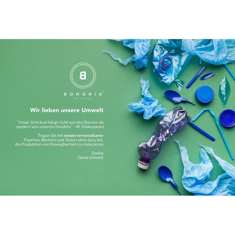 The Bohoria stainless steel thermal bottle is an environmentally friendly drinking bottle with a long service life. The drink stays warm/cold for up to 12 hours, so you always have your perfectly tempered drink with you and can enjoy it to the fullest.