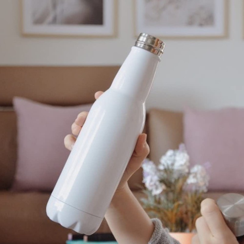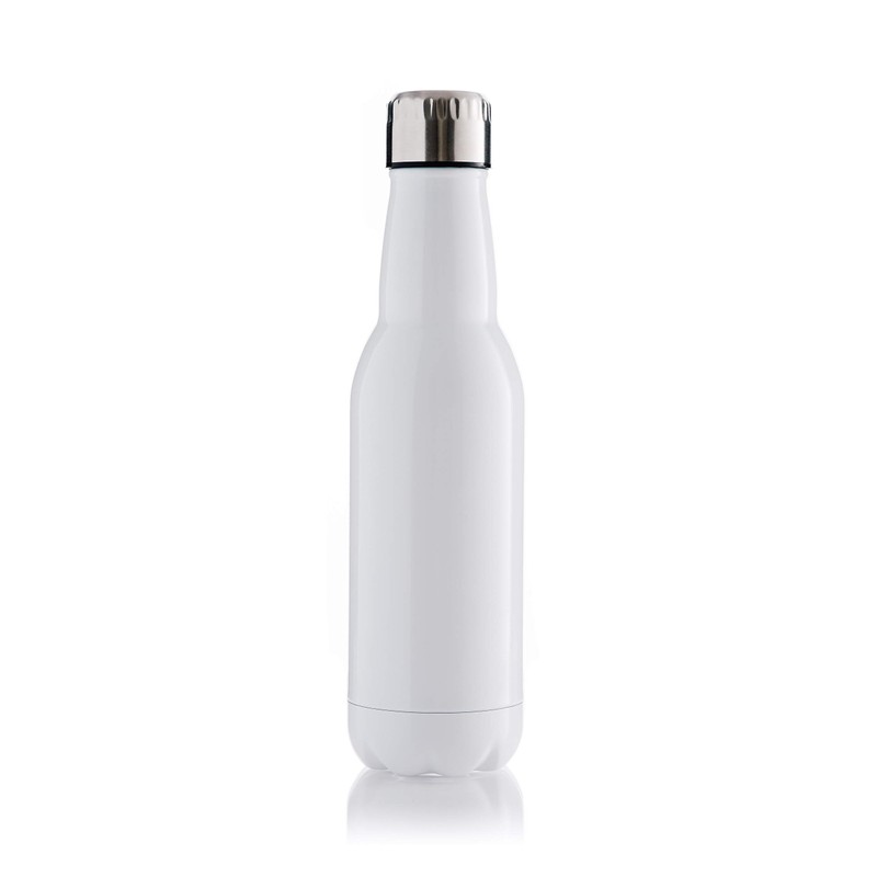 BOHORIA® Insulated Stainless Steel Water Bottle 500 ml with Engraving - Thermal Flask Double Walled & Vacuum Insulated - Water Bottle for Work, School, University, Sports, Travel (White Bottle)