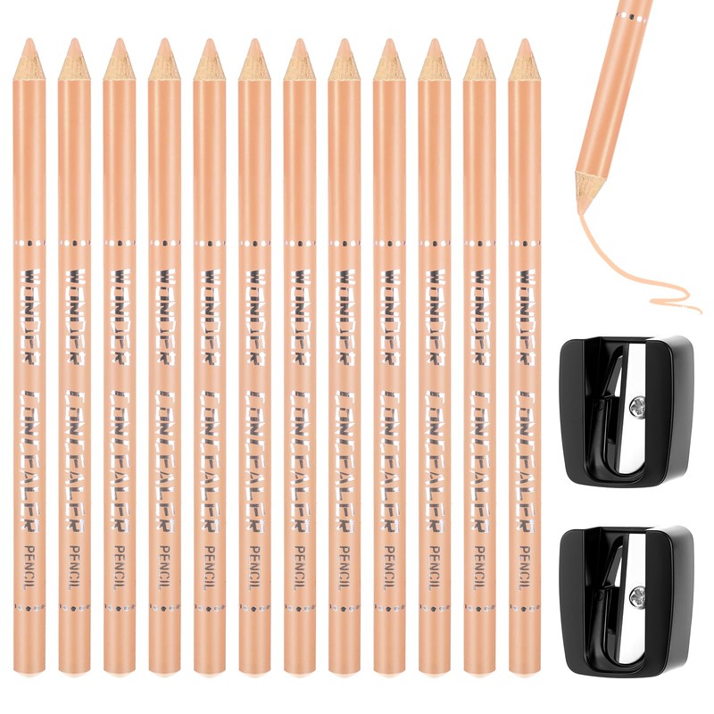 Packing list: 12pcs Skin-Toned Barber Pencil + 2pcs Black Pencil Sharpener