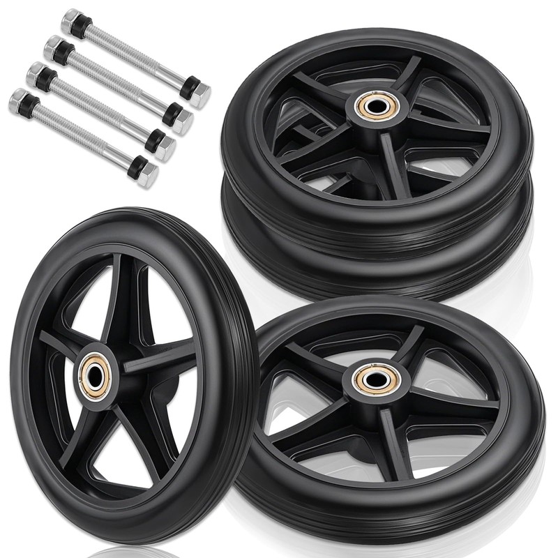 BOHUIZ 4 Pcs 6 Inch Walker Wheels Replacement, Replacement Wheels for Walkers Solid Wheelchair Front Wheel With 4 Axles for Wheelchairs, Rollators, Walkers