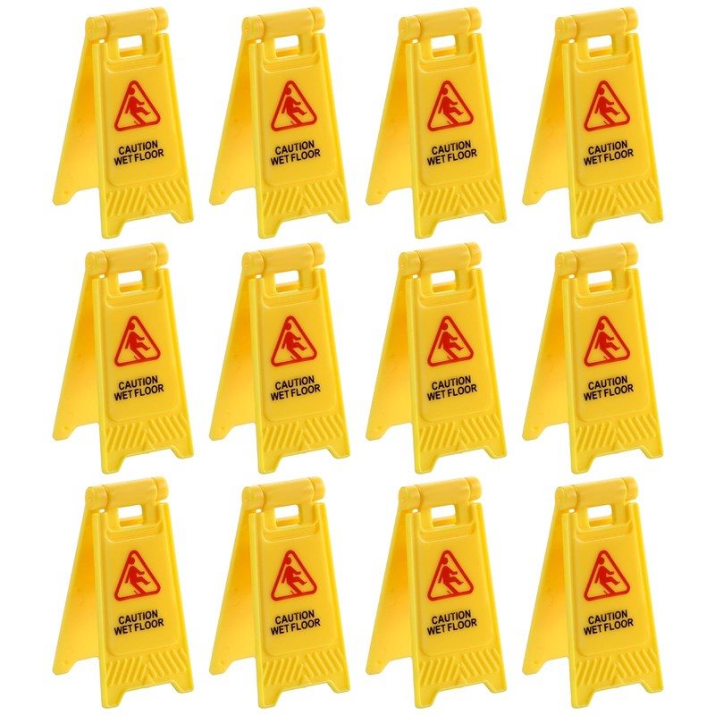 BOHUIZ BOHUIZ 12 Pcs Yellow Warning Sign, Mini Plastic Street Caution Wet Floor Mini Traffic Signs Safety Education Toy for Fashion Dolls DIY Accessories and Scene Ornaments(Caution Wet Floor)