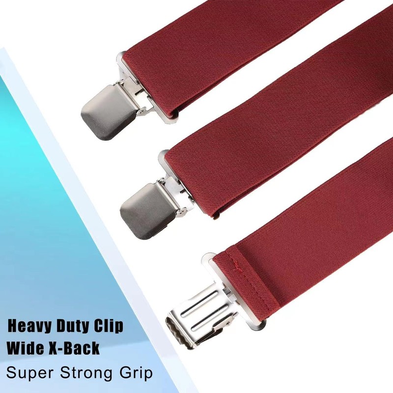BoiLafiYon Suspenders for Men with Heavy Duty Clip, 2" Wide Men's Suspenders for Work X-Back Suspenders Ideal for Seniors Fathers Husbands (Red)
