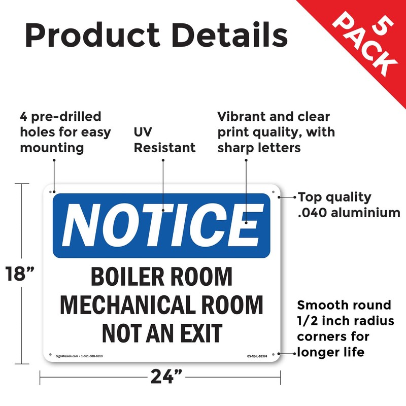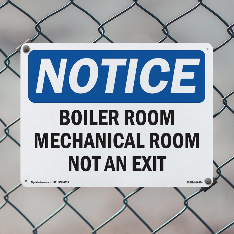Boiler Room Mechanical Room Not An Exit OSHA Notice Aluminum Sign 24 Inch x 18 Inch - 5 Pack