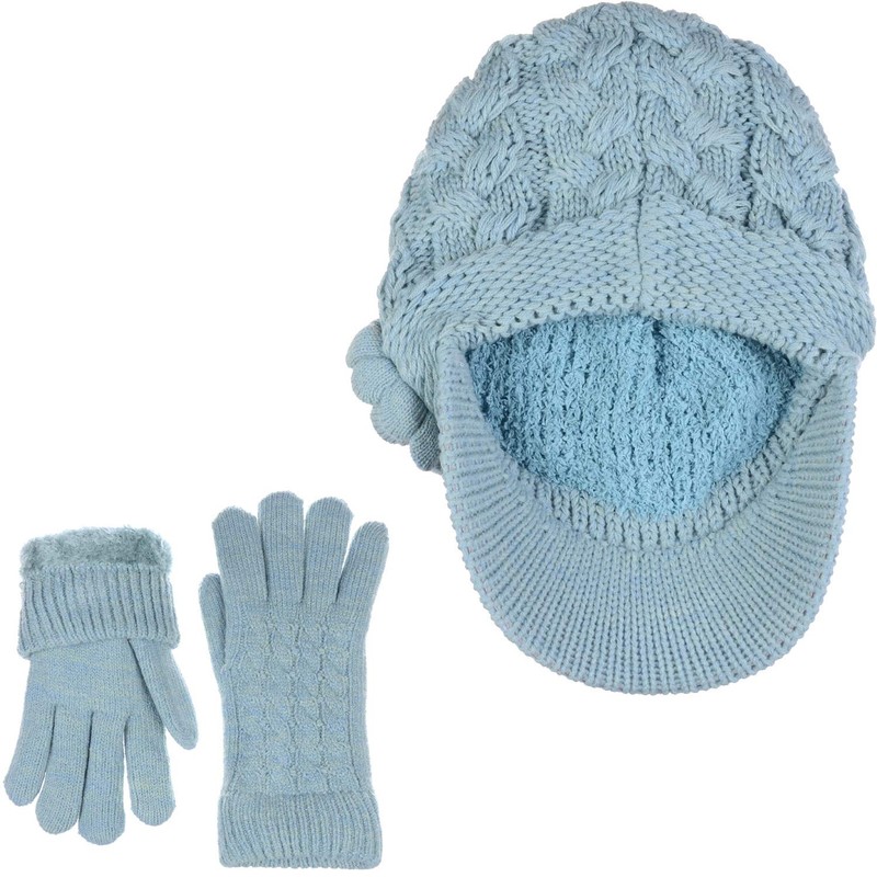 Boina de invierno elegante con visera para mujer, forro polar de felpa cálido, Set de guantes de sombrero de flores pastel, Talla única