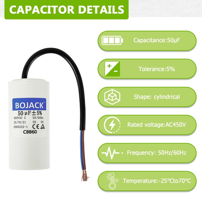 BOJACK CBB60 50uF 450V 50/60HZ Starting Capacitor, SH Motor Operating Capacitor, AC Motor Capacitor, with Wire