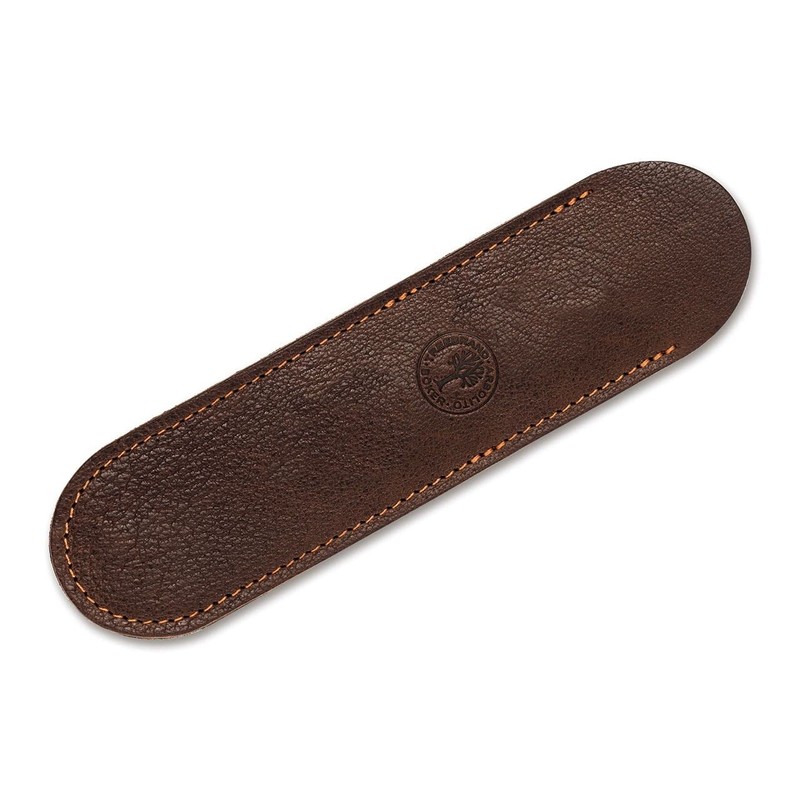 - The brown genuine leather sheath is decorated with an embossed Boker logo