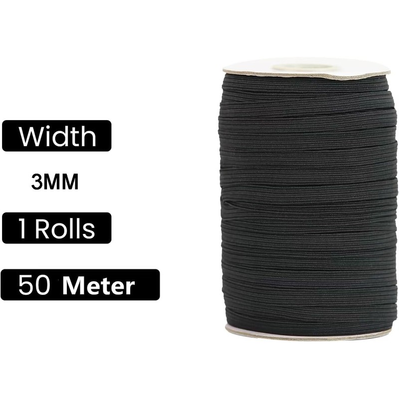 BOKFJBP 3 mm Elastic Band, 50 Metres Elastic Bands Sewing for Sewing and Household DIY Crafts Fabrics for Sewing Elastic Band Black