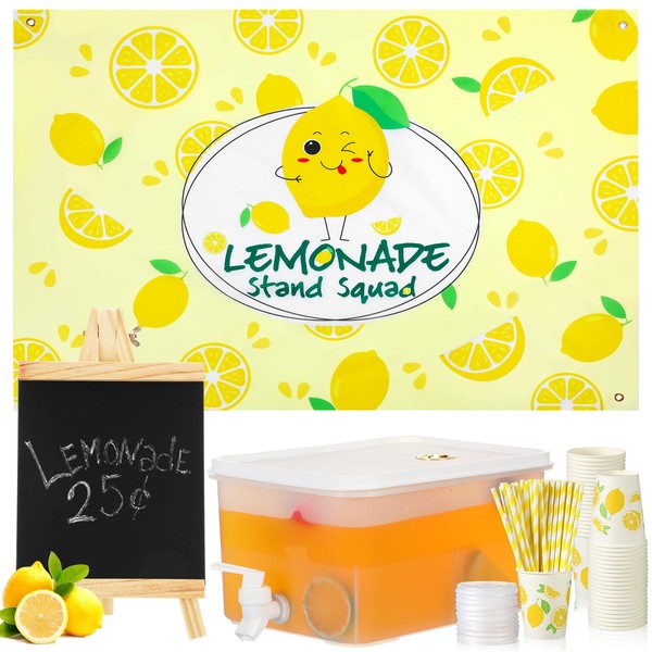 • Lemon Themed Design: our lemonade stand accessories feature a charming lemon themed design that adds a touch of whimsy and fun to your lemonade stand; The tablecloth and cups are all printed with cute lemon patterns, and with bright yellow for a summery atmosphere, your lemonade stand will easily attract everyone's attention; These supplies are great for lemonade stands, summer parties, or other events where you want to create a cheerful and welcoming atmosphere
