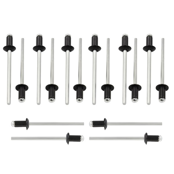 BokWin 100 Pcs Aluminum Blind Rivets 1/8 Inch x 1/4 Inch Black Pop Rivets 3.2x6mm Pop Rivets Assortment for Kayak Marine Boat