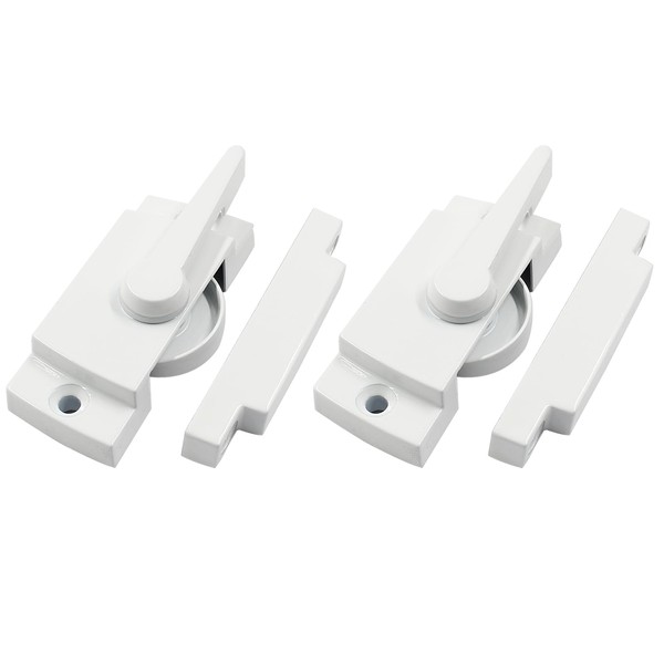 BokWin 2 Pcs Sliding Window Sash Locks and Keeper Cam Action Window Locks Replacement for Double Hung Security Window(White)