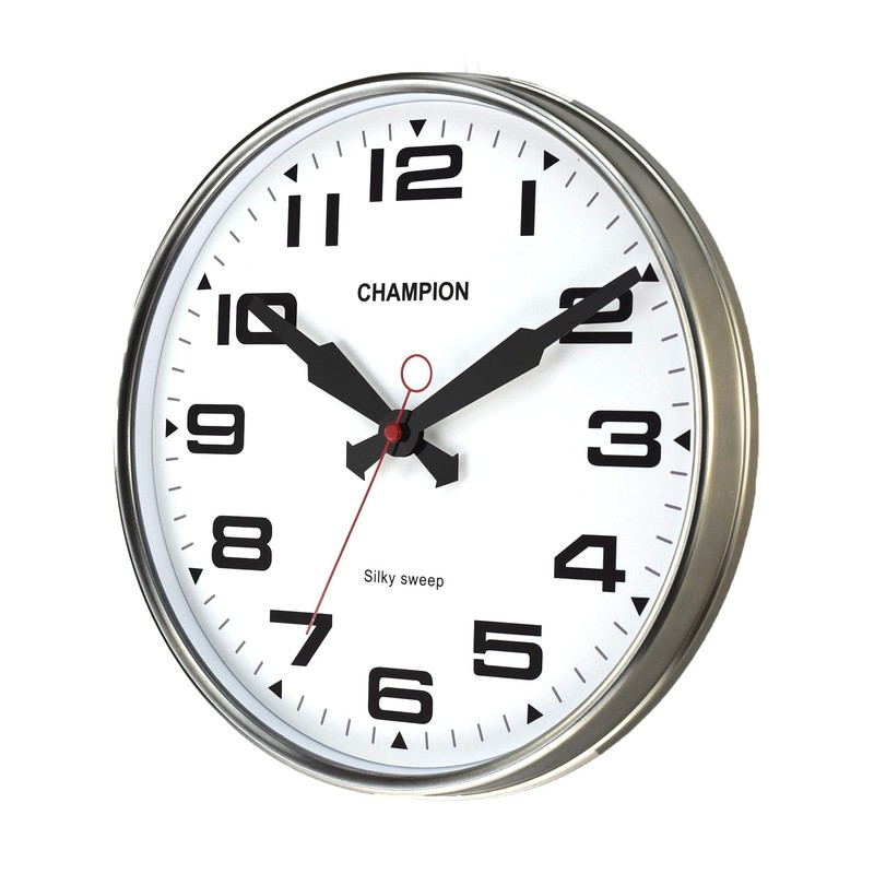 - Bold Champion Classic Silent Sweeping Seconds Hand Quartz Wall Clock with Domed Glass lens