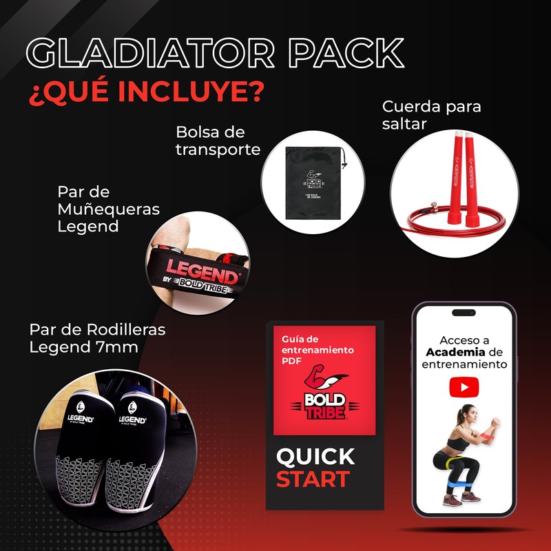 BOLD TRIBE Gladiator Pack - Rodilleras Deportivas 7mm Talla S + Muñequeras Legend - Estabilidad y Seguridad para Crossfit, Halterofilia y Entrenamientos - Incluye Cuerda de Saltar