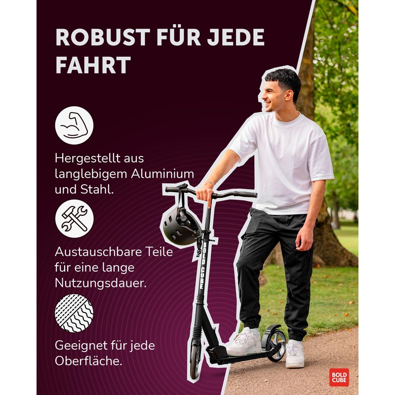 - FULLY REPLACEABLE PARTS - Designed to last, but easy to repair! Every BOLDCUBE kick scooters are designed to be 95% repairable by parts, so no scooter needs to go to landfill! This teens scooter for boys and girls come with a set of allen keys for scooter MOTs. Our friendly customer service team provide global email & video support whatever your question :)
