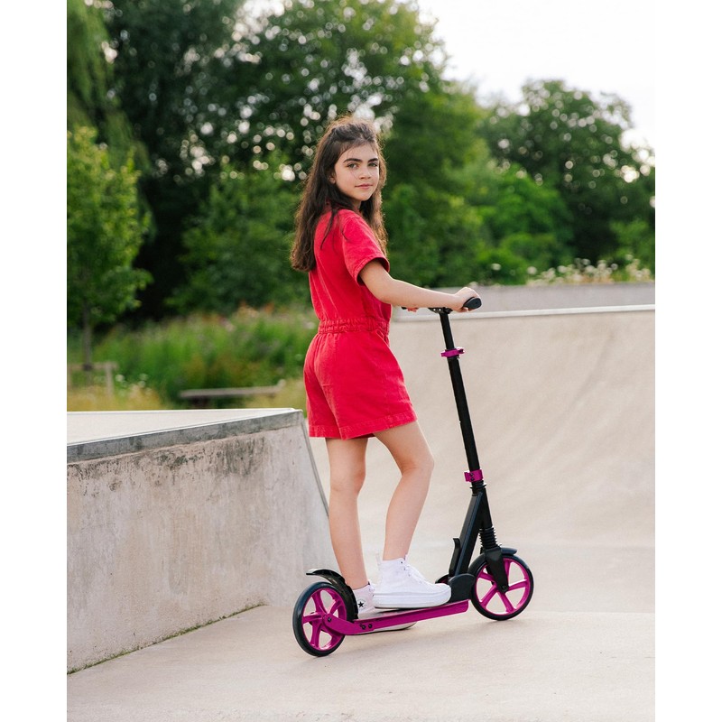 - EASY PUSH REAR BRAKE – Designed with aerodynamic vents, the rear fender brake offers effective speed control, for smooth (not jerky) stopping when riding your kid's scooter. This is the scooter commuters, adults, teenagers and kids will love!