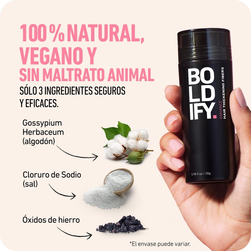 - Maquillaje capilar sin grumos para un efecto de cabello real y un acabado indetectable: Los polvos volumen pelo mujer y hombre de Boldify son la mejor solución para la calvicie. Ocultan instantáneamente las calvas y zonas ralas en sienes, raya y coronilla. Nuestras fibras para el cabello cuentan con moléculas que imitan los folículos y crean un acabado natural de aspecto real. ¡Mejor que el espray semipermanente de color negro y otras opciones de cepillos retocarraíces impermeables!