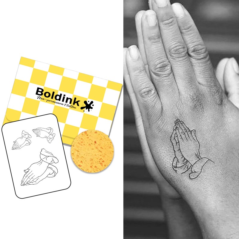 Boldink Semi-permanent tattoos, realistic fake tattoos, last 7-15 days, waterproof non-reflective temporary tattoo stickers, cruelty-free, uniquely designed exquisite packaging(Praying Hands)
