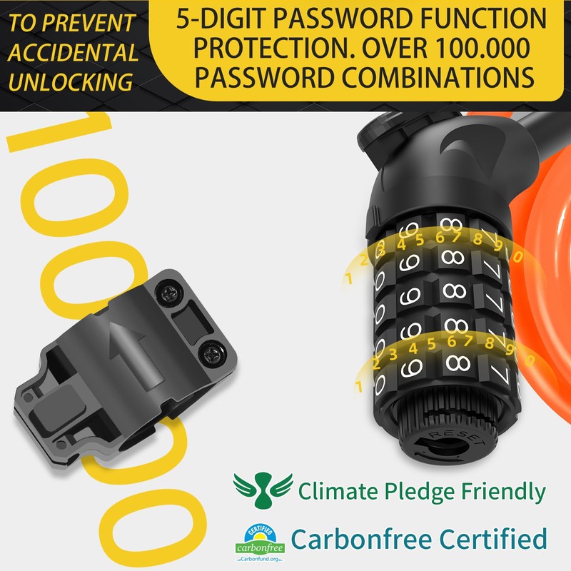 - Bicycle lock with 5 digit code: more than 100,000 number combinations, simple and easy to use, with enclosed instructions in the packaging