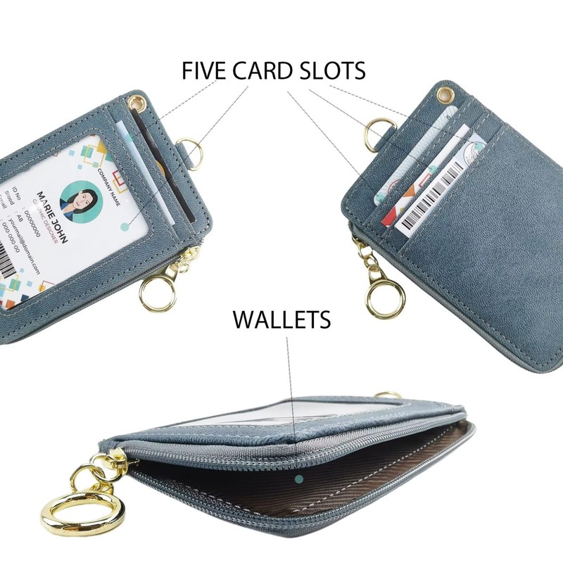 - 【STRUCTURE】: front and back five card slots with transparent window, can insert id cards, ID cards, business cards, credit cards,curise ship cards, side zipper pocket can hold cash, change, invoices, etc.