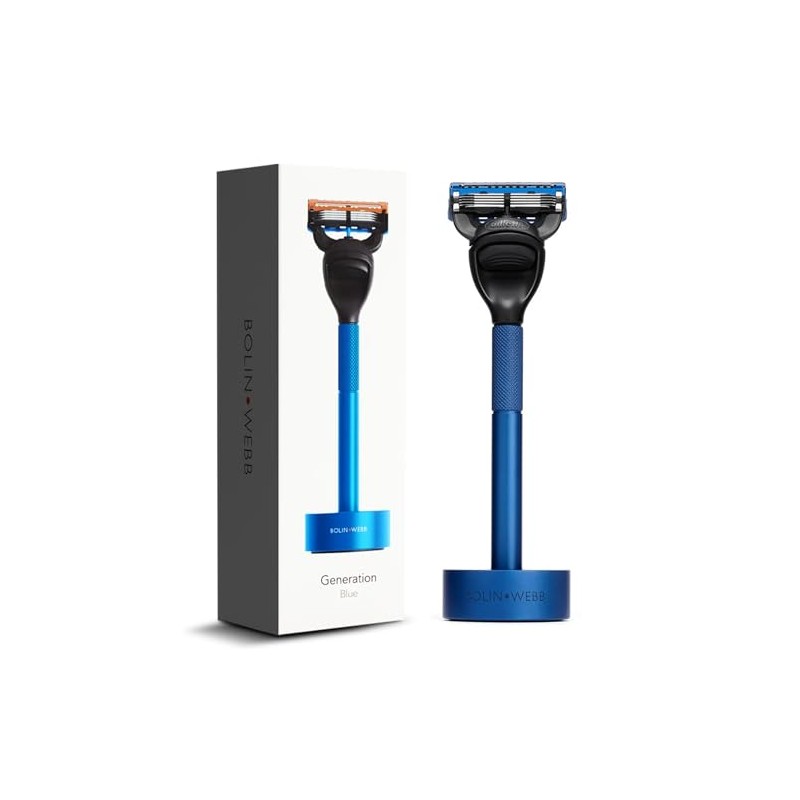 Bolin Webb Bolin Webb Generation Razor and Stand in Blue. Fitted with Gillette Fusion5 Blade. Luxury Razor for Men.