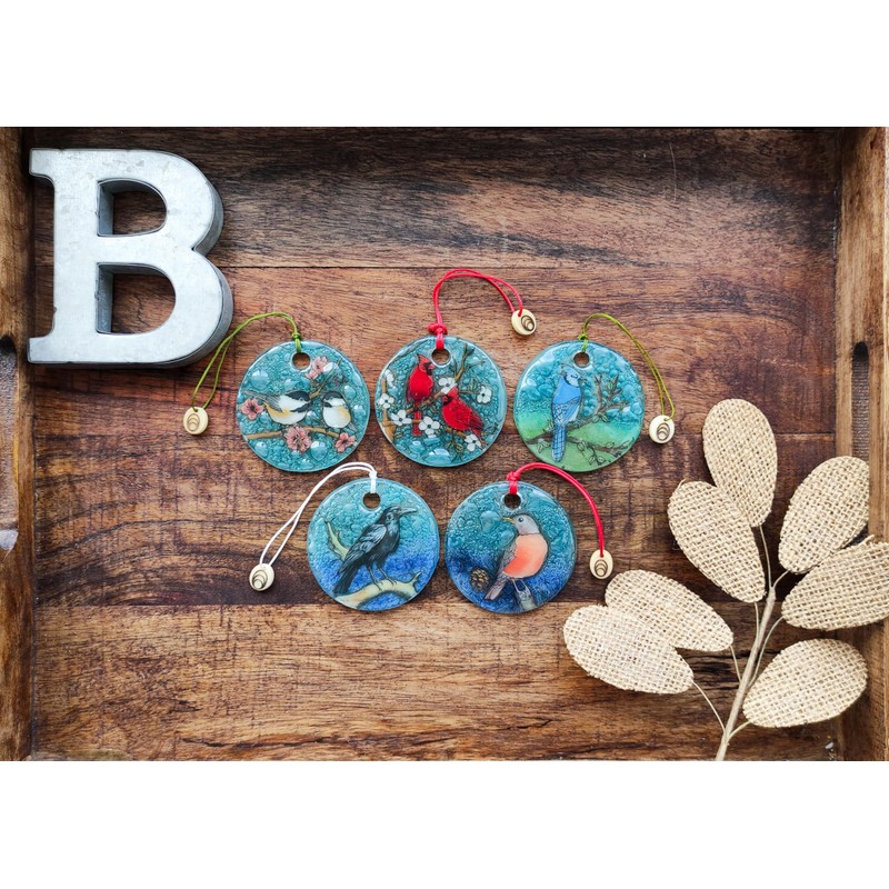 This is a lovely Bue Jay Bird Ornament that you can hang in your tree or window for your pleasure.