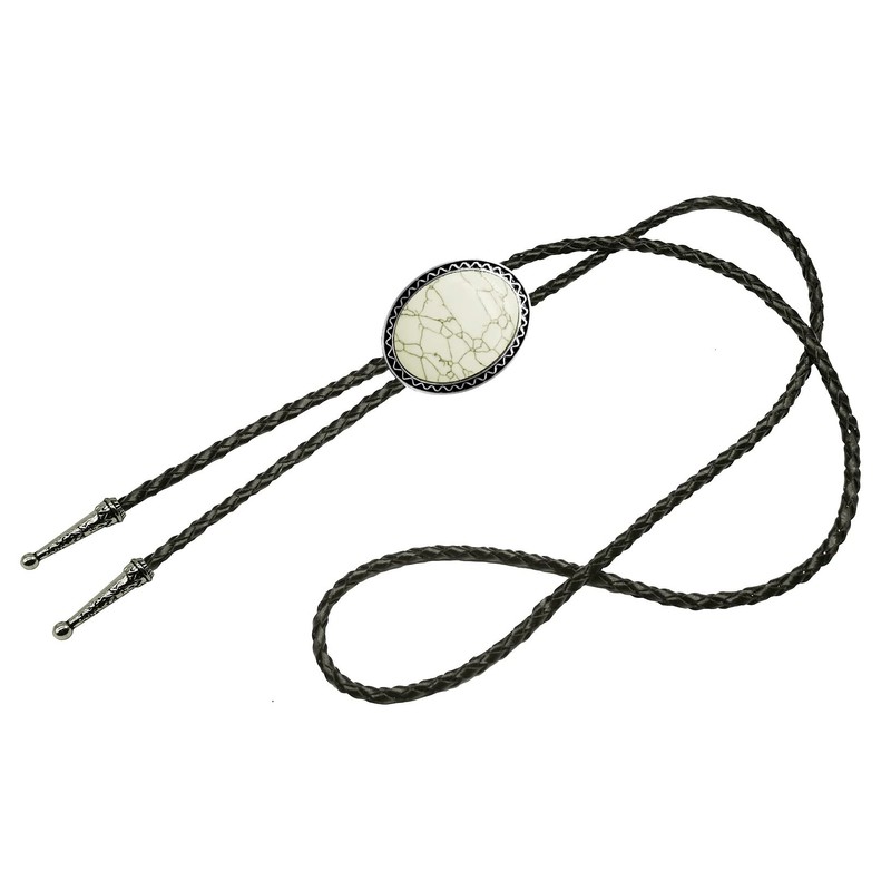 Bolo Tie with Natural Stone Turquoise Stone Style Genuine and Cowhide Rope More Colors, White Agate Style, Medium