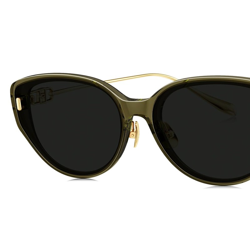 BOLON Women Fashion Cat eye Nylon Lens Polarized & Non-Polarized UV400 Sunglasses BL5085 (Transparent Olive/Grey Polarized, Millimeters, 61)