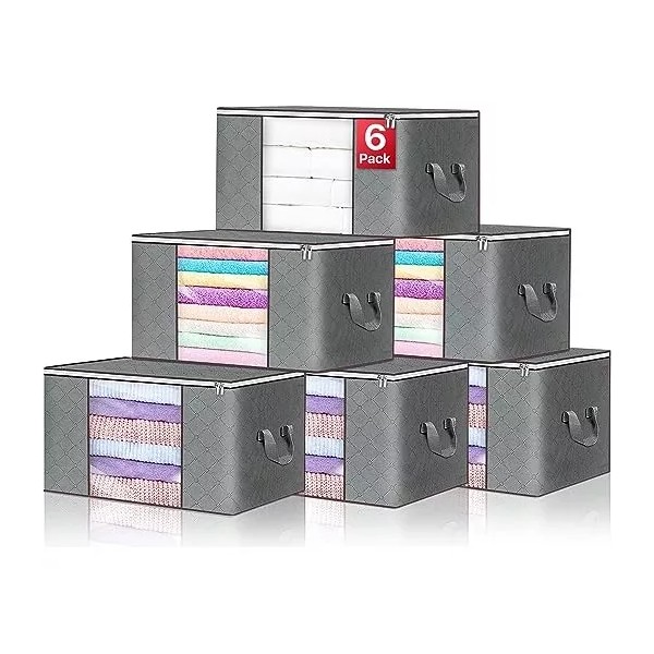 GRAN CAPACIDAD: la bolsa de almacenamiento de edredón viene en un juego de 6, cada una mide 60 x 40 x 35 cm / 23,6 x 15,7 x 13,7 pulgadas, la capacidad del organizador es de 90 L. Puede acomodar su ropa de temporada, mantas, edredones, plumón chaquetas, suéteres, almohadas, juguetes.
