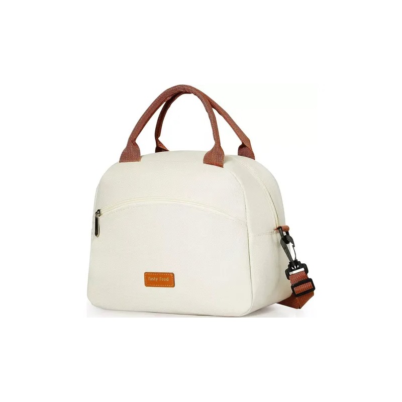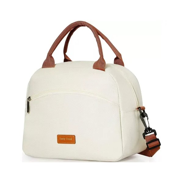 [2] Portátil y multiusos: Tamaño de la bolsa de almuerzo: 10,5 x 8,5 x 5,9 pulgadas (largo x alto x ancho). La lonchera tiene dos bolsillos diseñados para separar los cubiertos de la comida. Bolsillo frontal para teléfono móvil, llaves y otros objetos pequeños. Esta es una excelente bolsa de almuerzo para que las mujeres empaquen alimentos y bebidas en el trabajo, picnics, playa, viajes por carretera, campamentos, viajes u otras actividades al aire libre.