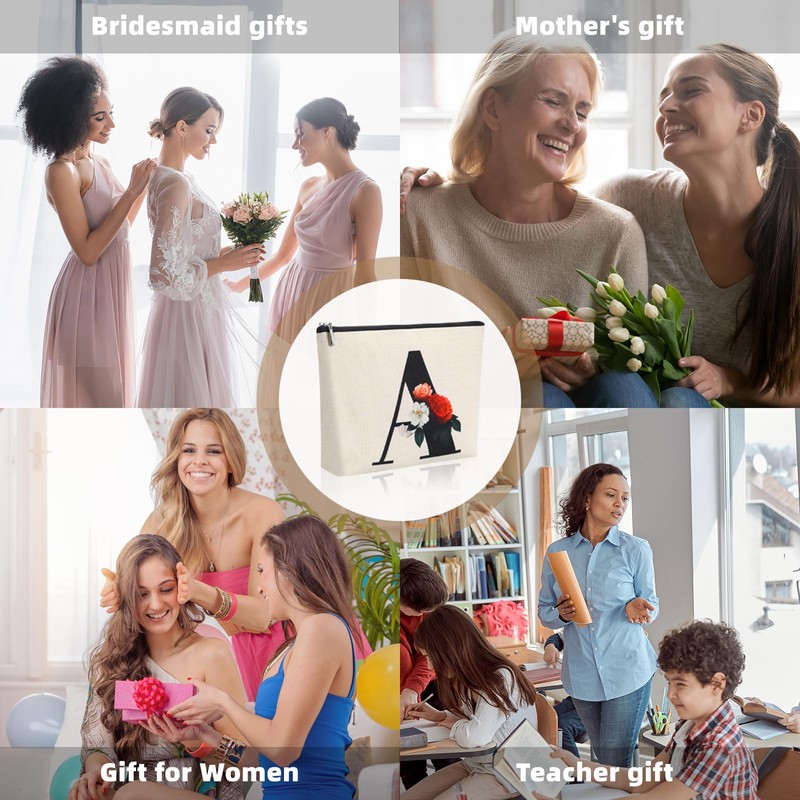 • 🎁 La bolsa de maquillaje con letras de moda con cierre es una gran idea de regalo para mujeres de 20, 30, 40, 50, 60 y adolescentes, como esposa, hija, mamá, amigos, mejores amigas de trabajo, profesores, trenzas, preparadas, compañeros de trabajo. Simplemente disfruta viendo tu nuevo apellido/el monograma impreso en esta bolsa.