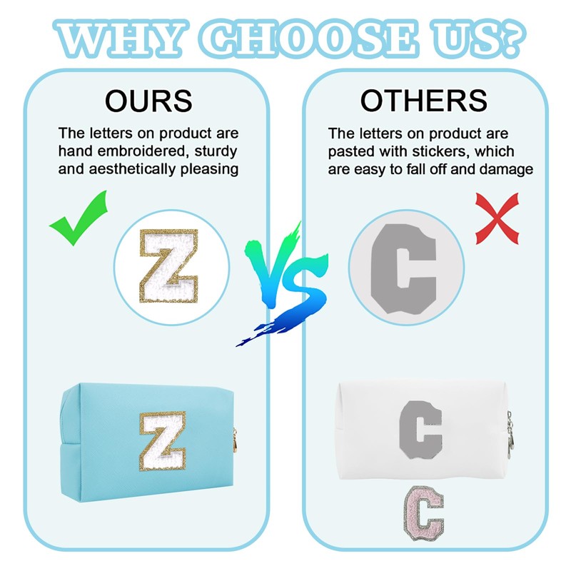 • Regalo ideal: los diferentes parches de letras hacen que cada bolsa de maquillaje sea única y adecuada para diferentes escenas o festivales. Regalo ideal para cumpleaños, Acción de Gracias, Navidad, Año Nuevo, día de graduación, semana de apreciación del profesor, etc. También es el regalo perfecto para amigos, novias, damas de honor, familiares y colegas.