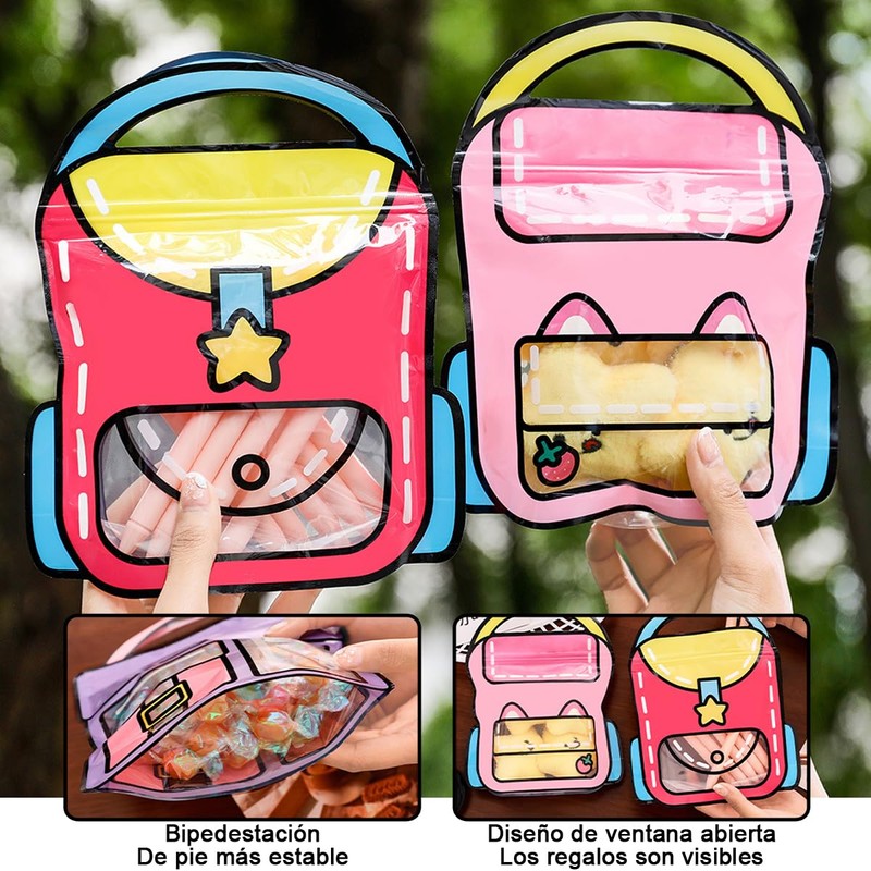 - Diseño llamativo: Nuestras bolsas de caramelos para fiestas infantiles están diseñadas con colores vivos y una bonita apariencia de mochila escolar, lo que las hace visualmente atractivas para los niños