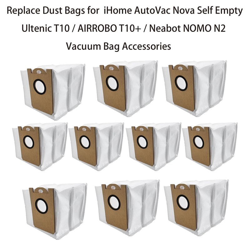 Bolsas de polvo de repuesto para iHome AutoVac Nova Self Empty/Ultenic T10 / AIRROBO T10+ / Neabot NOMO N2 Accesorios para bolsas de aspiradora (paquete de 10)