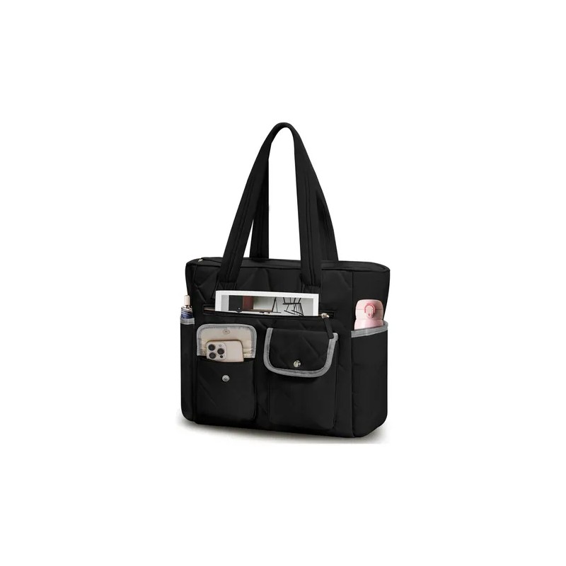 Bolsas Para Dama Tote Bag Nubily Color Negro De Viaje Con Múltiples Bolsillos Diseño De La Tela Lisa