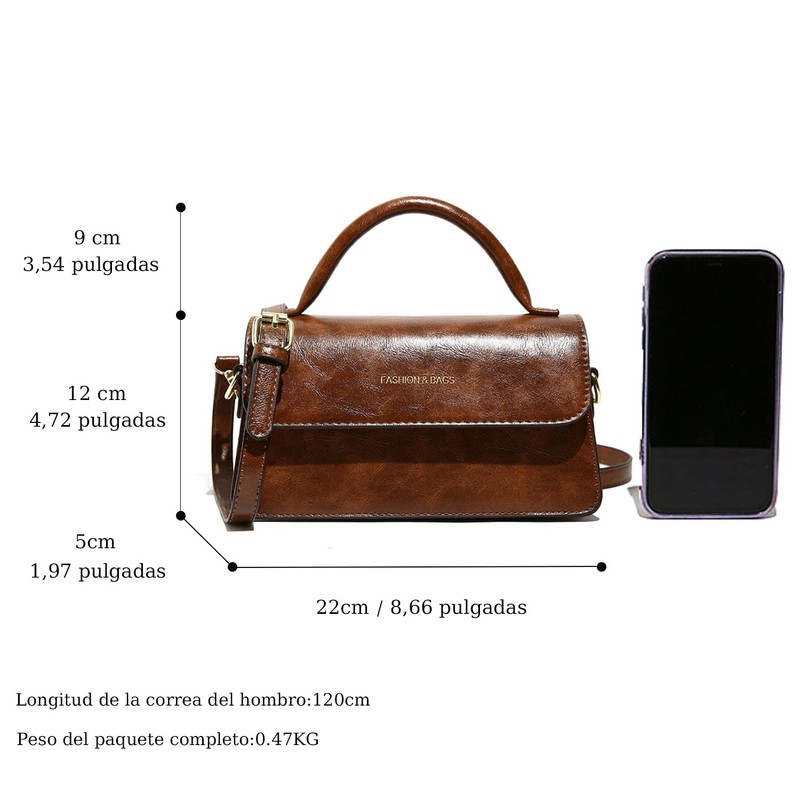 Con sus dimensiones de 22 cm x 12 cm x 5 cm (8,66 pulgadas x 4,72 pulgadas x1,97pulgadas), este bolso es perfecto para llevar lo esencial sin sacrificar el estilo.