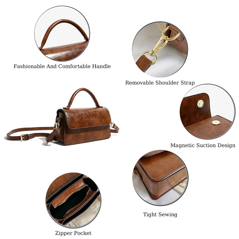 Diseñado con un estilo cuadrado pequeño, este bolso versátil puede utilizarse como bolso de mano, bolso de hombro o bolso cruzado.
