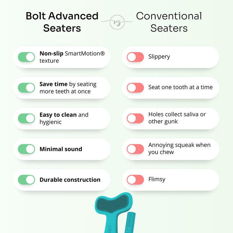 BOLT Aligner Seaters (Set of 2) – Aligner Chewies for Invisalign, FSA HSA Approved Orthodontic Clear Aligner Chewys with Non-Slip Design and Hygienic Handle – Green