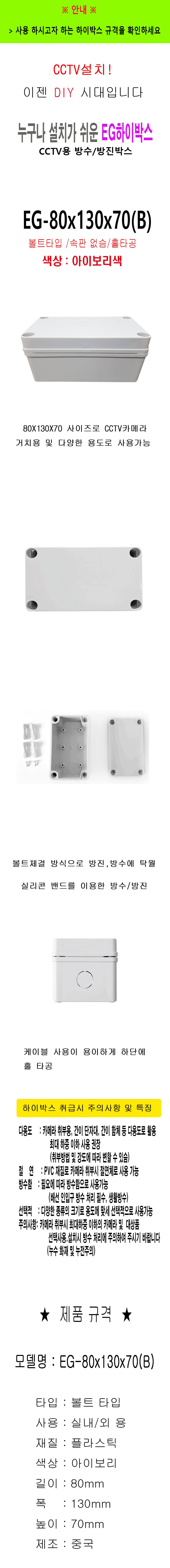 Bolt-Type Hi-Box 80x130x70 CCTV Distribution Box Waterproof Box 2ea