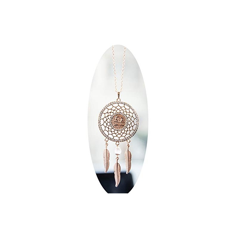 Boltz Mini Zodiac Libra Sign Dream Catcher Car Charm Rear View Mirror Accessories, Boho Dangling Feather Tassel Bead Pendant Constellation Ornament Wall Hanging Home Decoration (Libra-2)