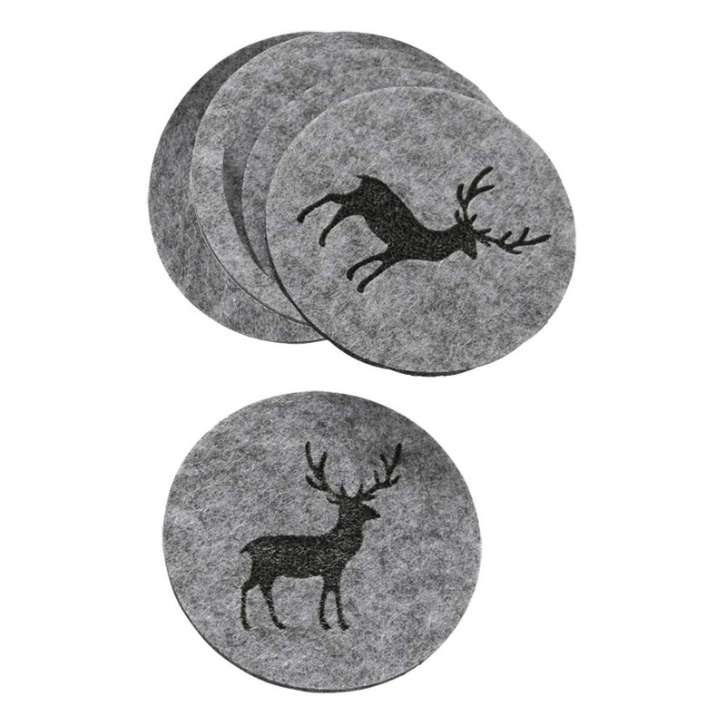 Boltze Home Collections Tjark Coasters, Grey, Diameter 10 cm, Set of 6 (Grey Deer)