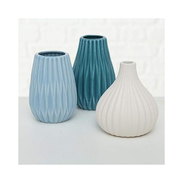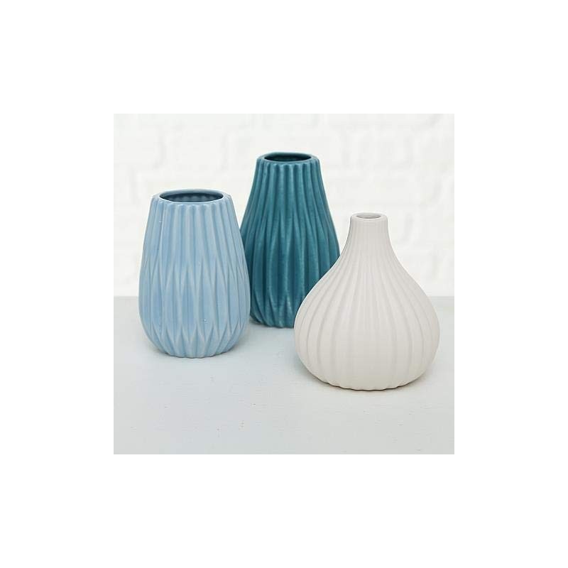 Boltze Wilma Vase 3 Assorted Height 12 cm Blue Stoneware