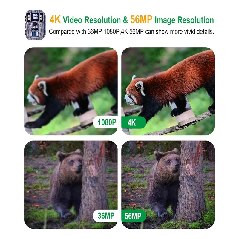 - Excellent Resolution 4K hunting camera, 56MP sensor, delivers clear images and ultra-detailed videos day and night