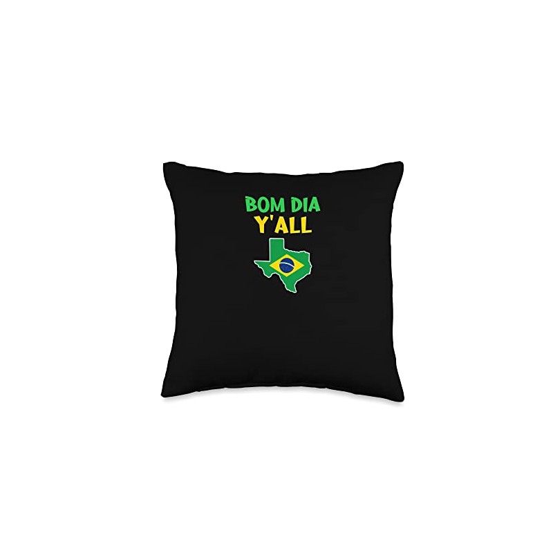 Bom Dia Y'all Brazilian Texan Design for Proud Texas Immigrants Throw Pillow, 16x16, Multicolor