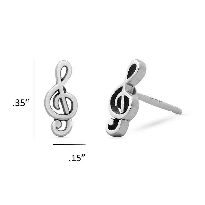 Boma Jewelry Sterling Silver Treble Clef Music Stud Earrings