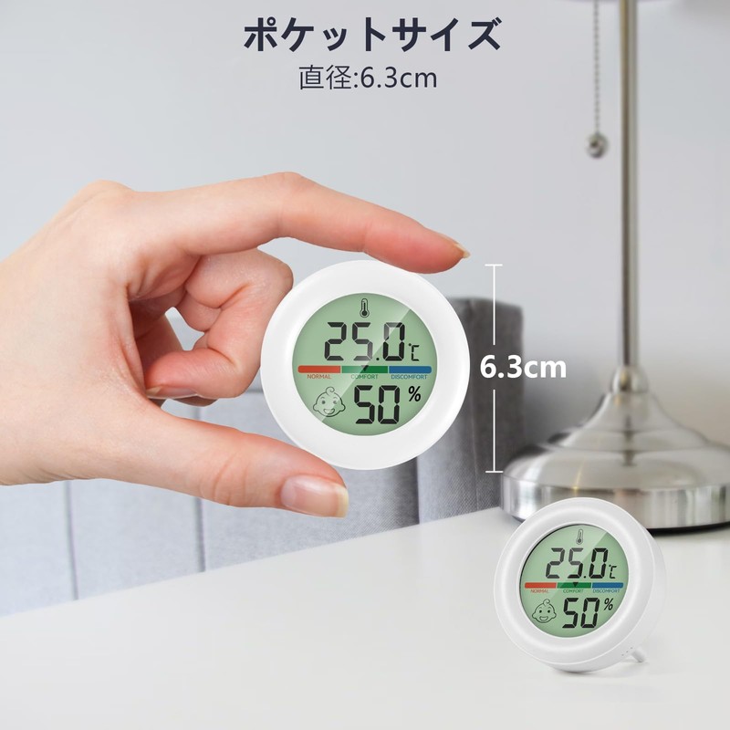 - [ Package Contents ]: Hygrometer, 1 LR44 battery (spare), 2 double sided tapes