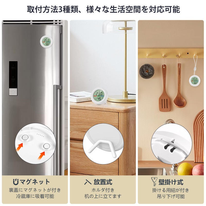 - [ Comprehensive Application]: Indoor digital thermometer is suitable for refrigerator, counter, living room, baby room, kitchen, basement, office, conservatory, basement, supports desktop stand and adhesive stickers, so you can stick it and place it anywhere. Installation