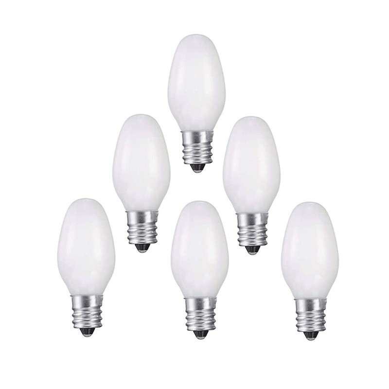 - Bombillas C7, candelabro/base E12; 5 vatios, 120 voltios, 18 lúmenes