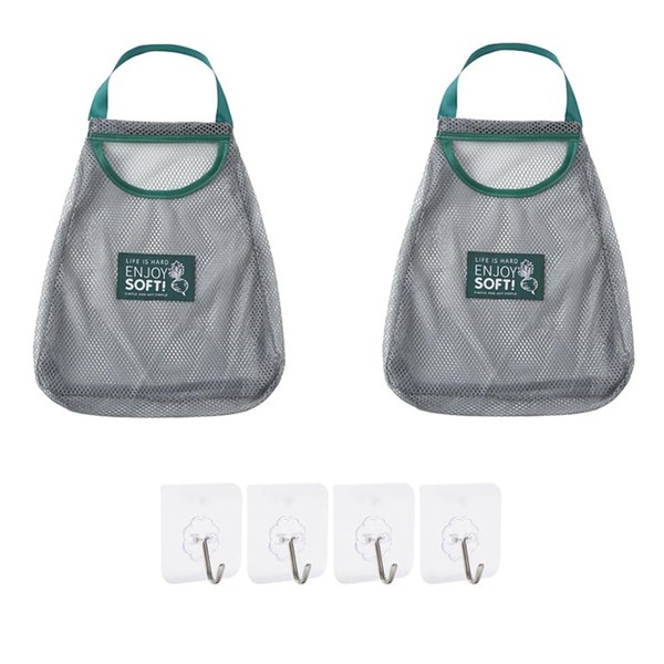 Bombinate Mesh Bags Set of 2 with 4 Hooks Storage Net Vegetable Stocker